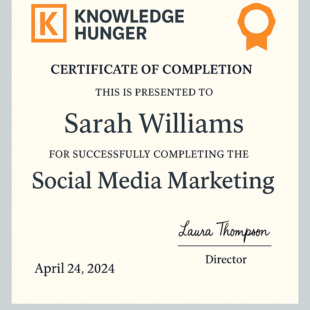 The course includes platform-specific strategies (Instagram, Facebook, LinkedIn, YouTube, X), content planning and design, hashtag research, influencer marketing, ad campaign creation, social media analytics, and community management. You’ll also learn to use tools like Canva, Meta Business Suite, and Buffer.